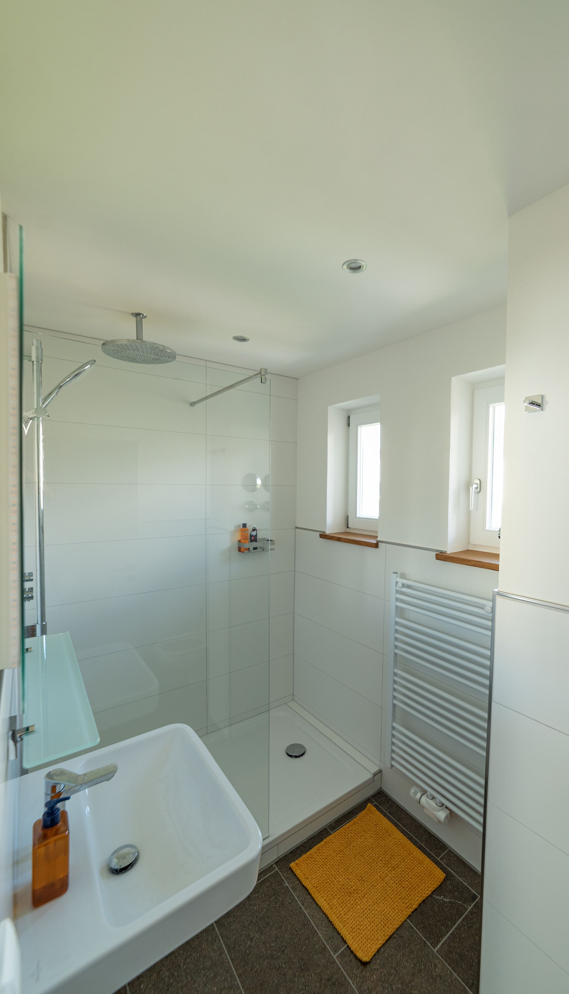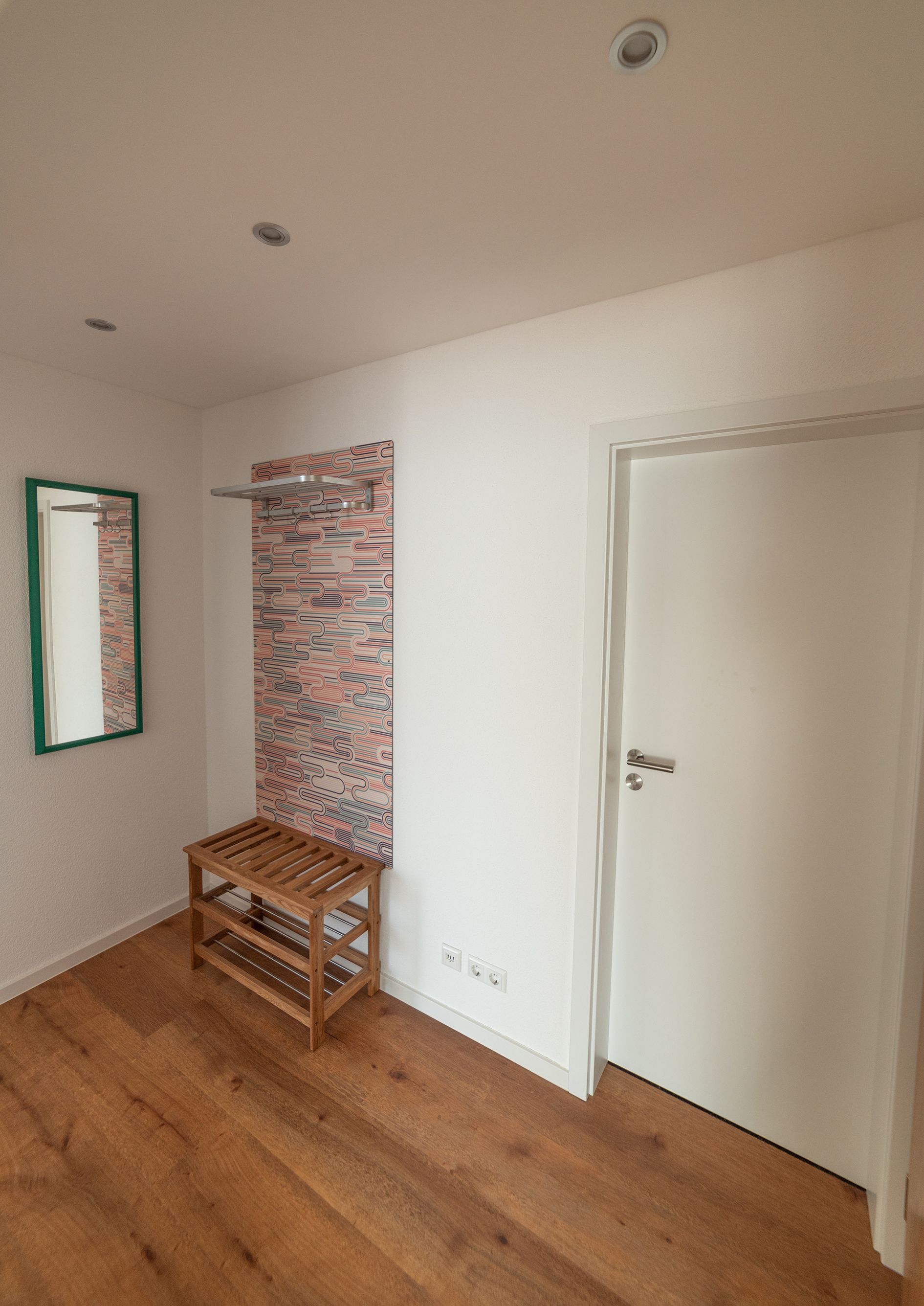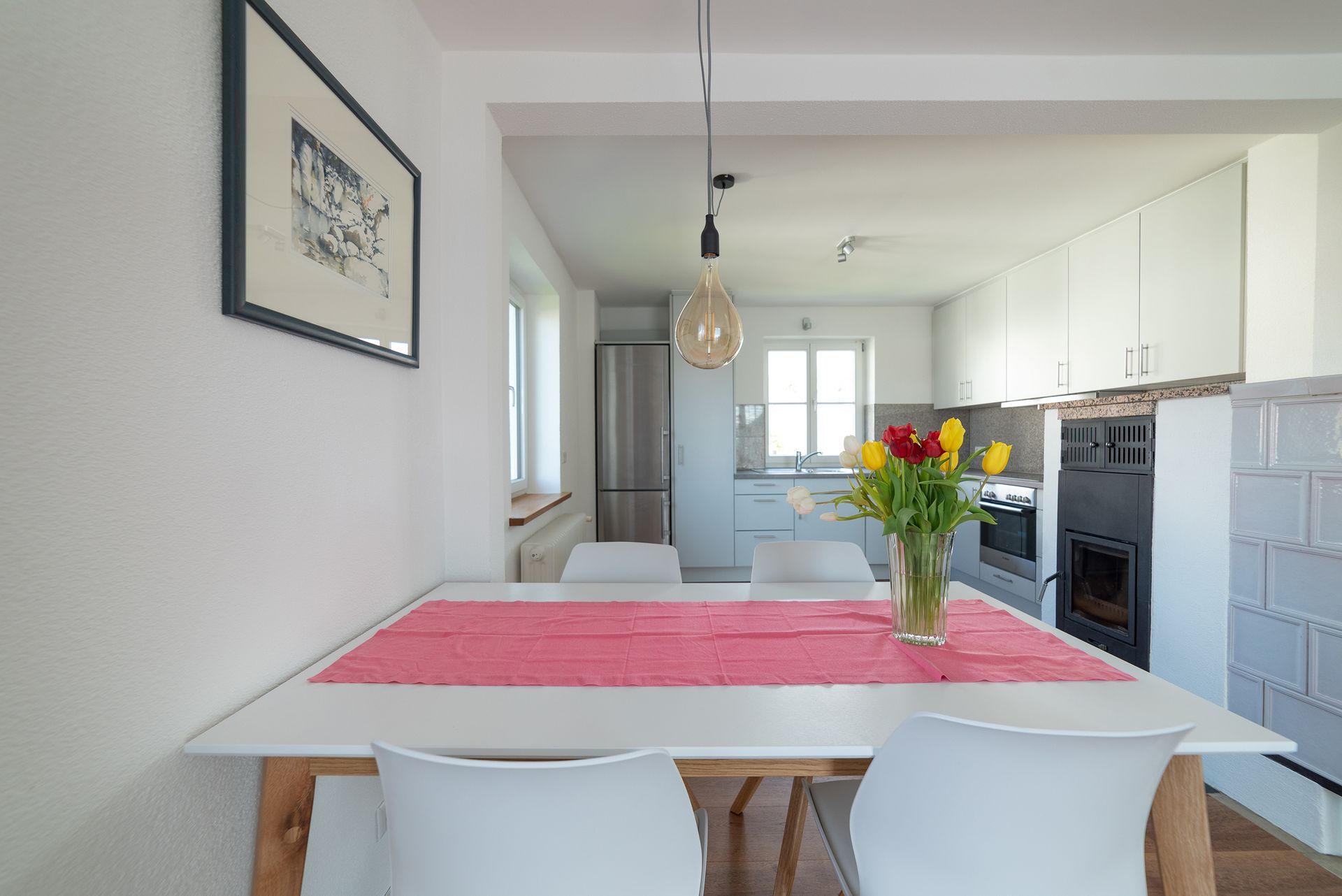 Freuen Sie sich auf die positive Ausstrahlung unserer Ferienwohnung im Obergeschoss. Freundliche Töne in unterschiedlichen Nuancen sorgen für eine sonnig-helle Atmosphäre. Es erwartet Sie eine angenehme Raumtemperatur, hochwertiges Mobiliar und kleine Aufmerksamkeiten. Im Haus selbst können Sie einen Stellplatz vor der Tür und einen Fahrrad-Carport sowie das W-LAN kostenfrei nutzen.
